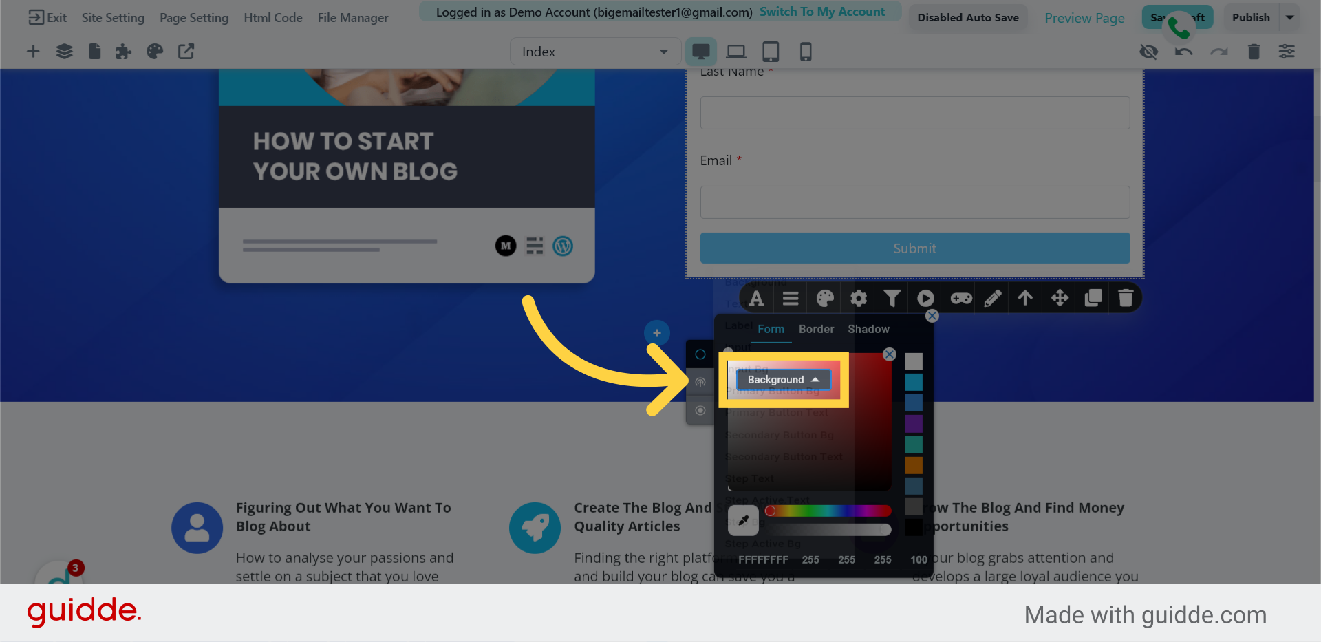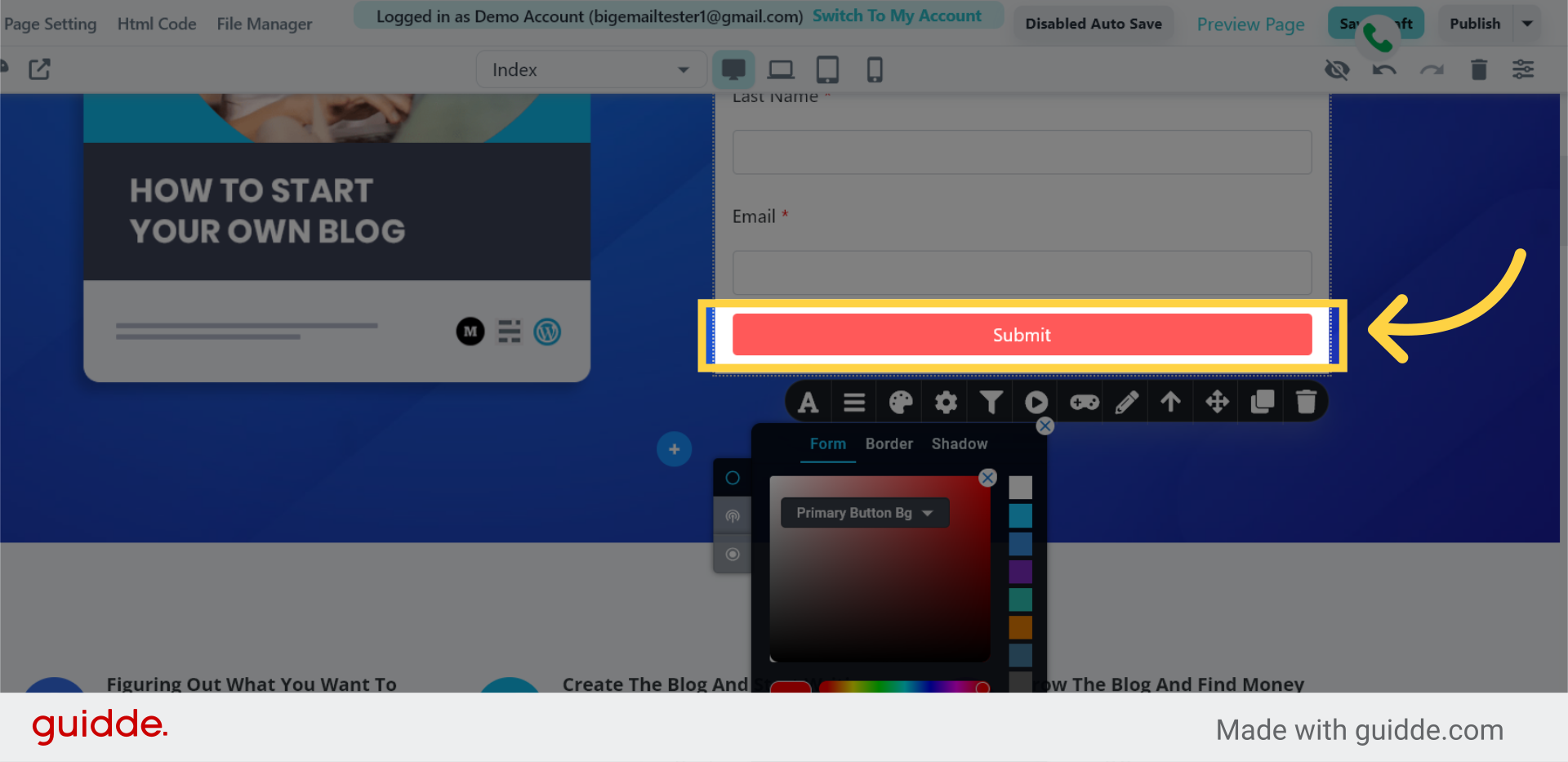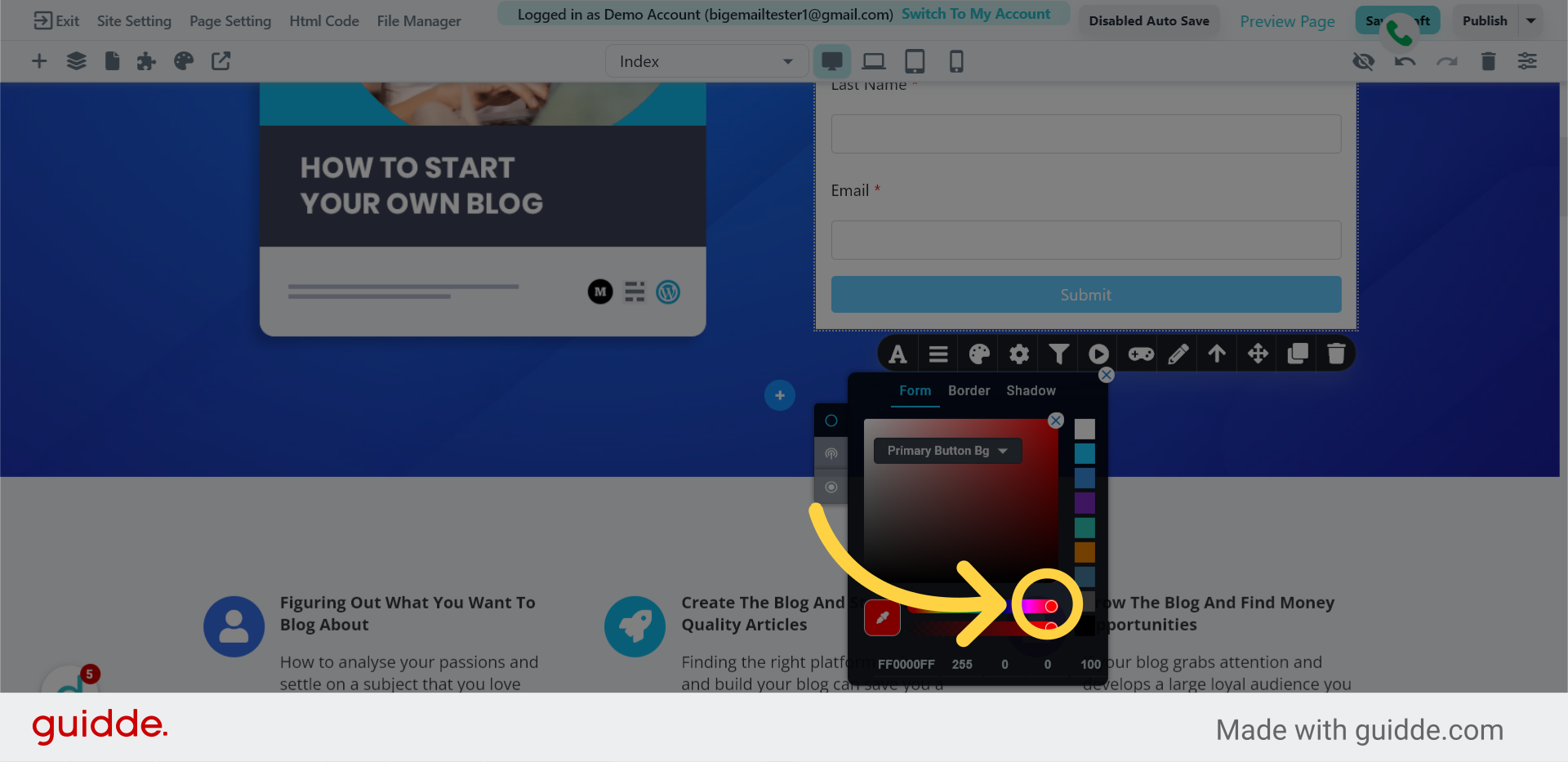 #### 3. Click the drop down menu, and select "Primary Button Bg"