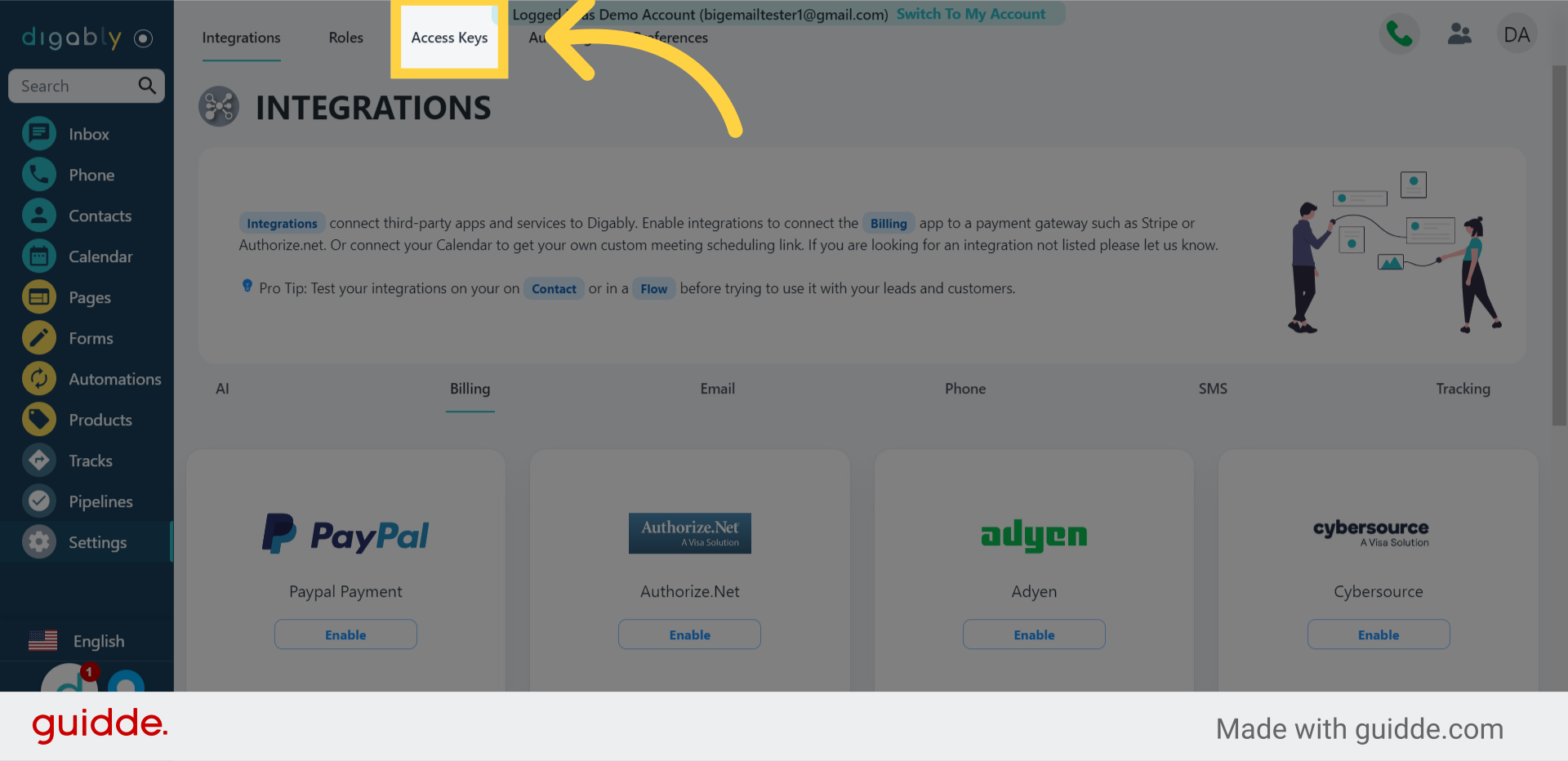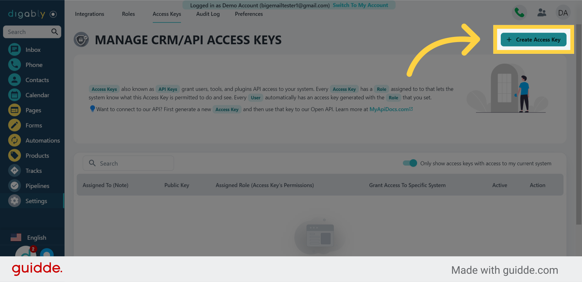 This guide will show you how to allow other users to access your account by creating access keys in Digably.