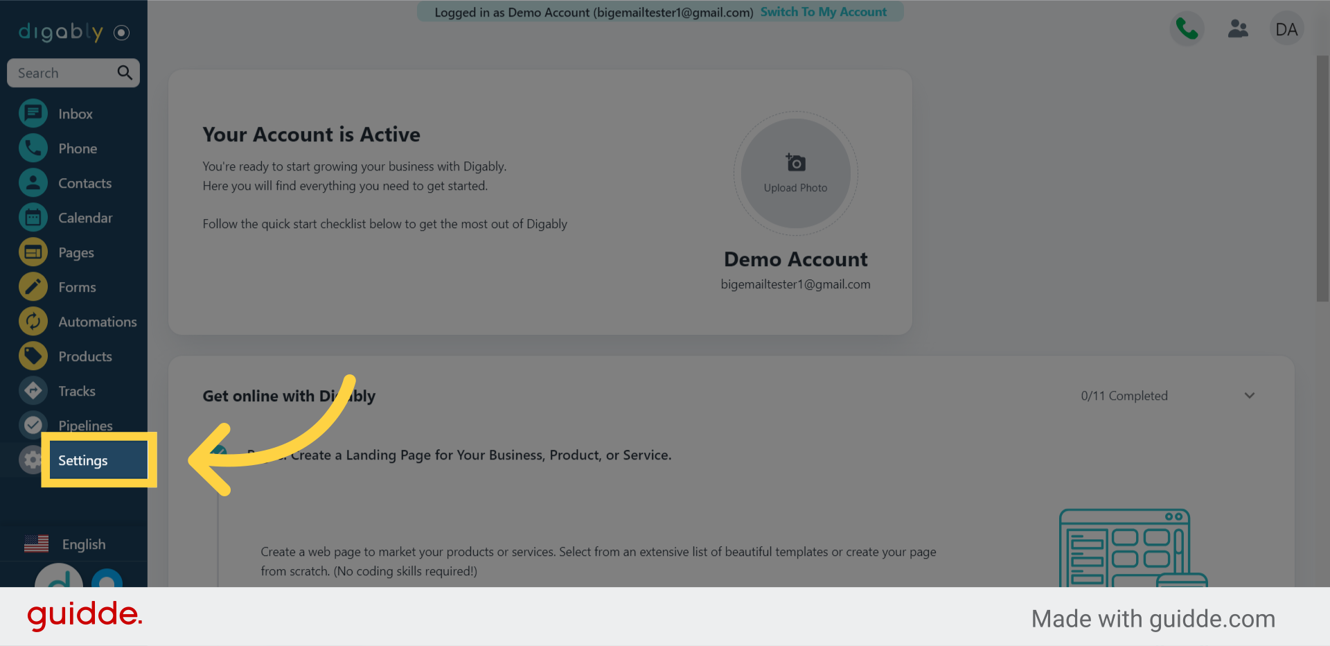 From your dashboard, click "Settings" in the left side menu.