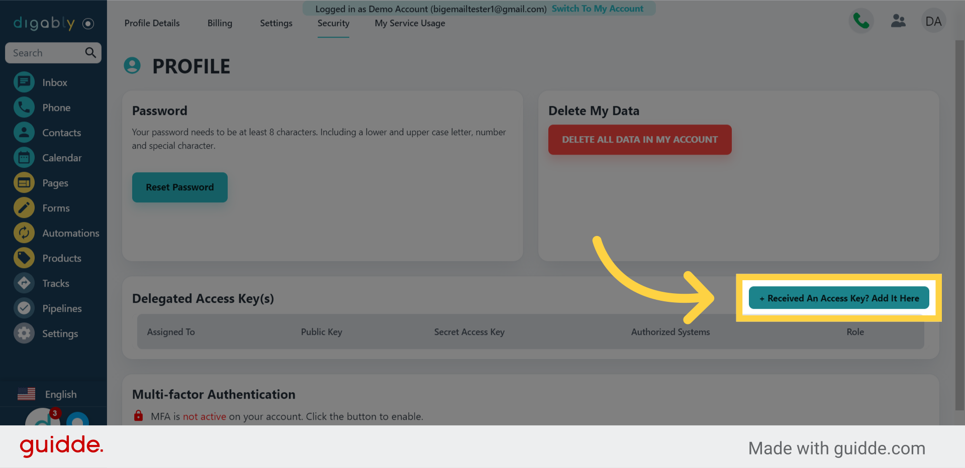 4. Click "+ Received an Access Key? Add It Here"