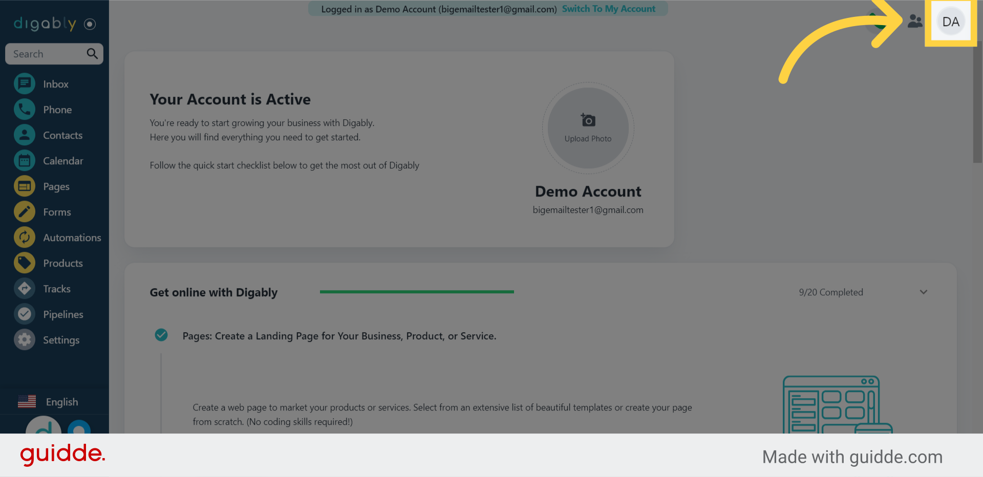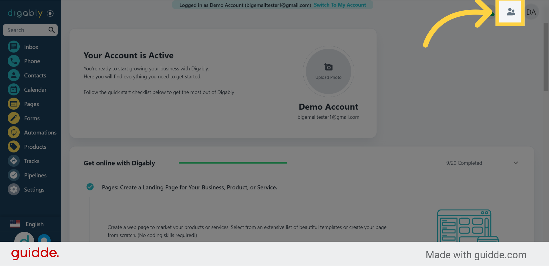 7. Click your account icon