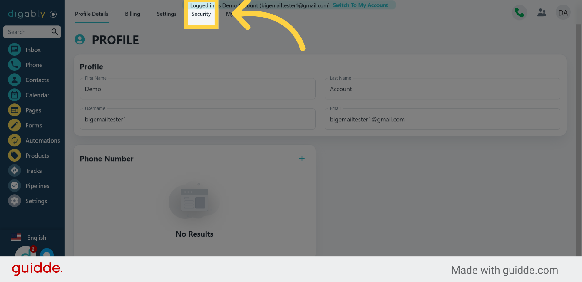 3. Click "Security"