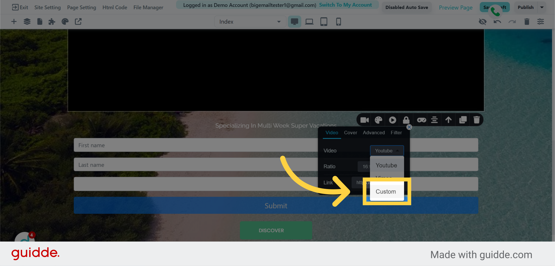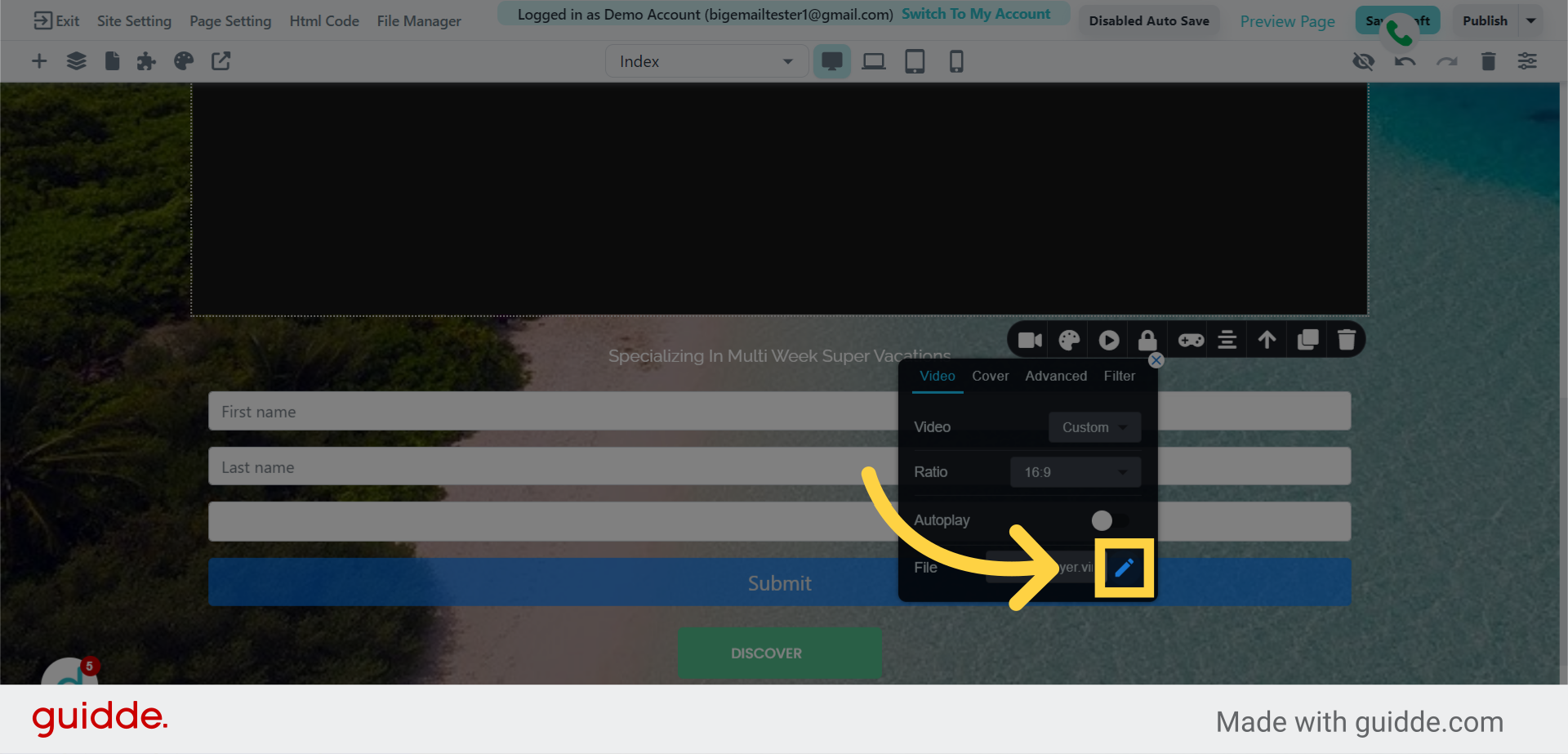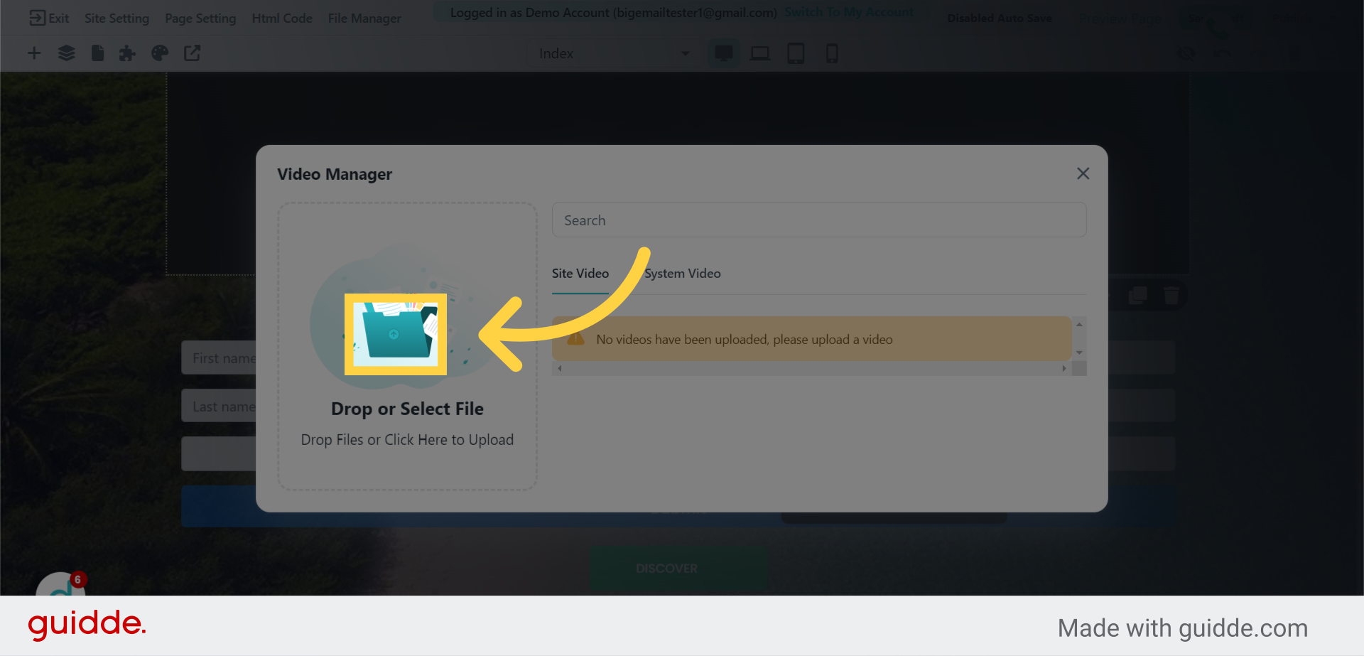 Select and add your video file into the Video Manager. Keep in mind, the video must be less than 25 megabits to load into the video manager. Otherwise, it is recommended to host on Youtube or Vimeo. This allows for optimal page speed and performance. If your video is larger than 25 megabits, you can try compressing it using a free tool like Handbrake.