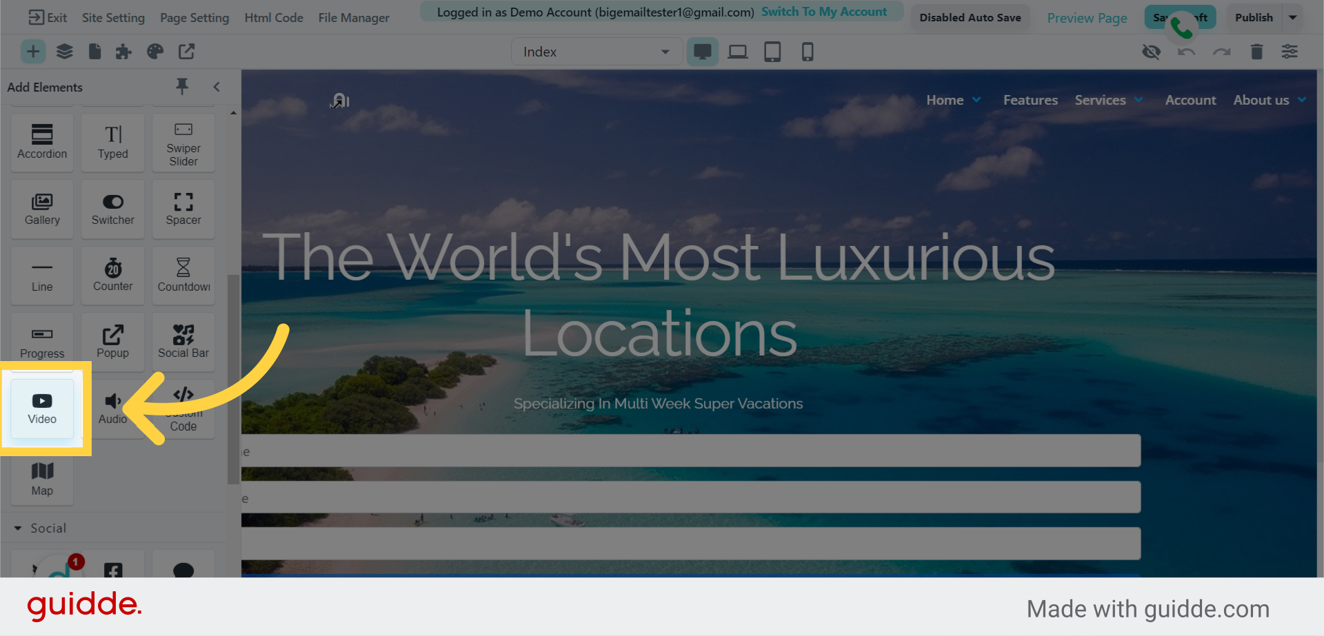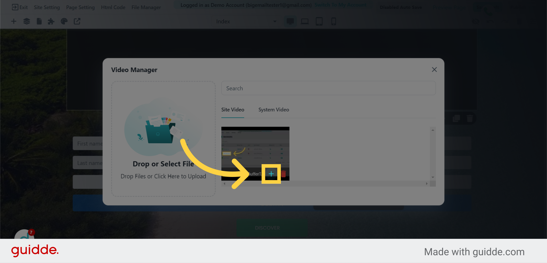 Once your video is uploaded, click the "+" icon to add it to the page.