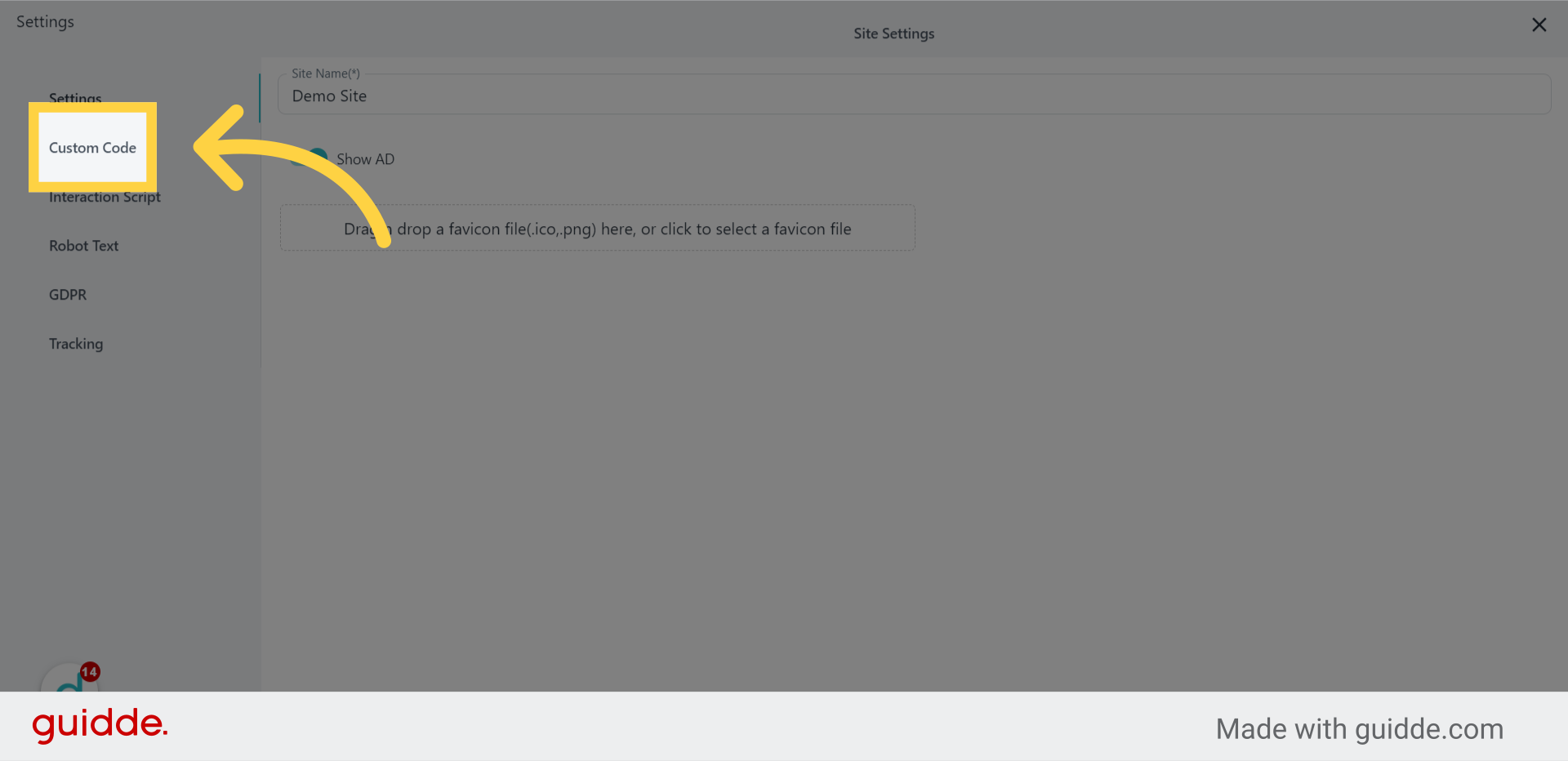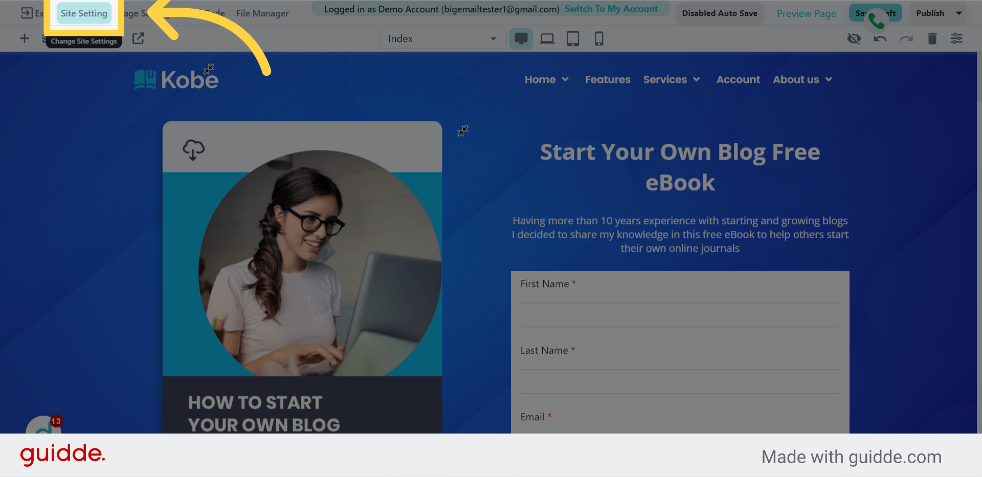 First, click "Site Setting" in the upper left. These settings will apply to the entire site.