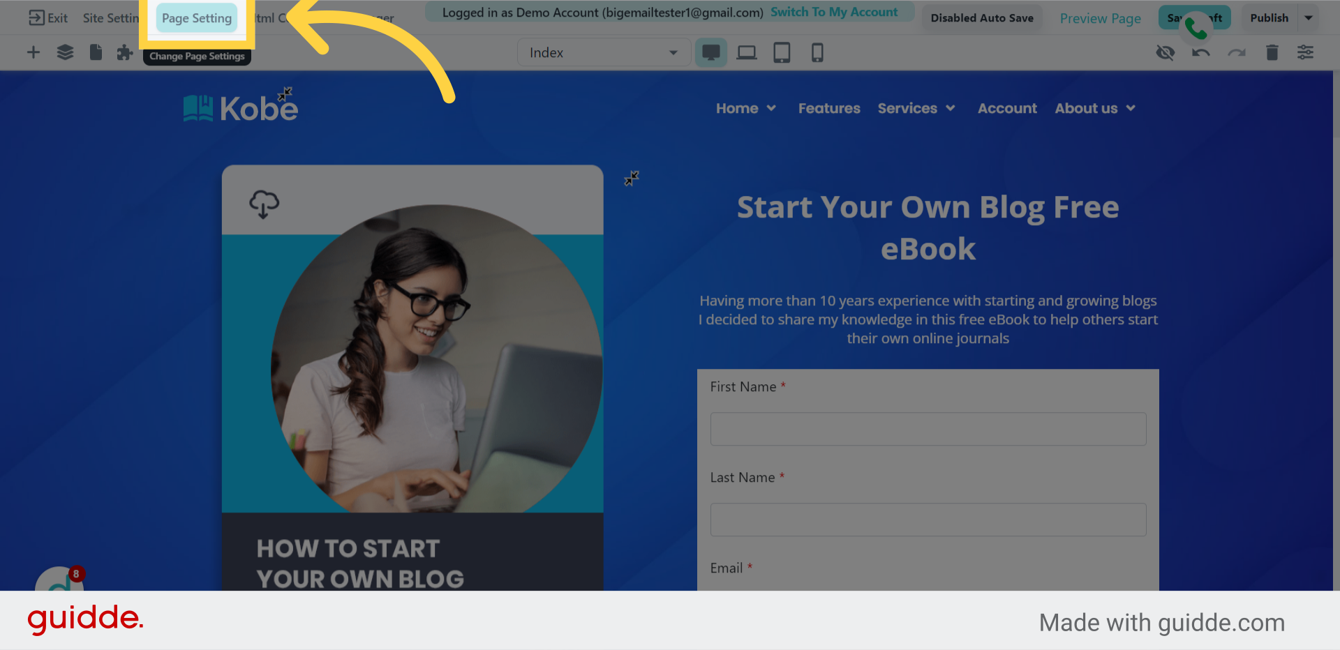 First, we'll cover how to add custom CSS to the individual page. Click on "Page Setting" in the upper left of the page builder.