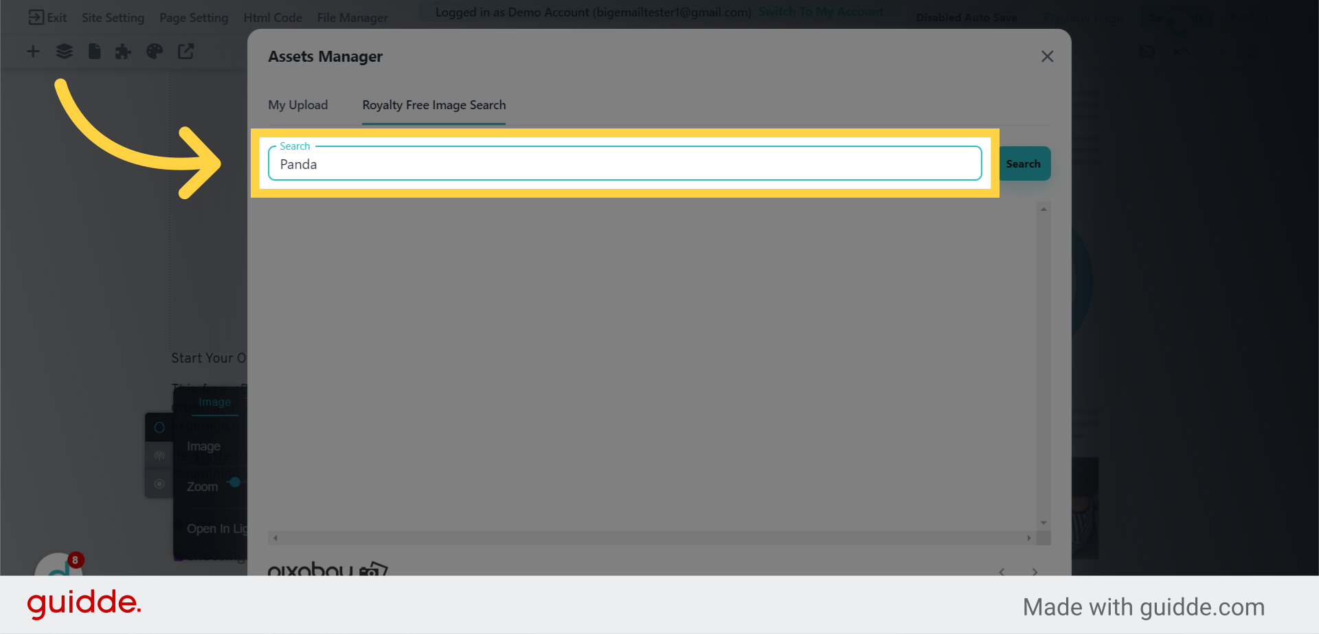 Enter a search term. For this example, we'll enter the word, "Panda." Then click "search."