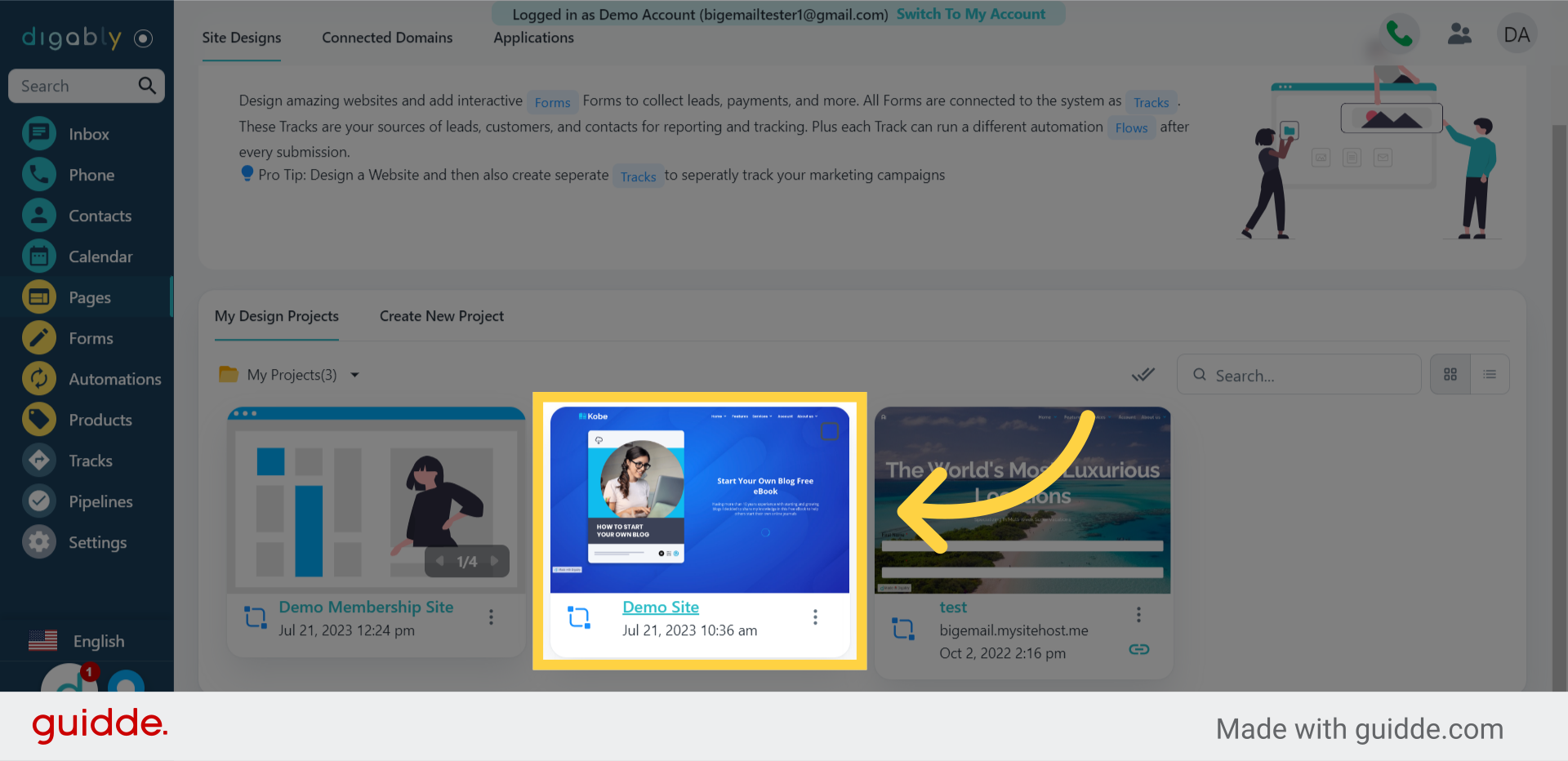 #### 2. Click "Demo Site"