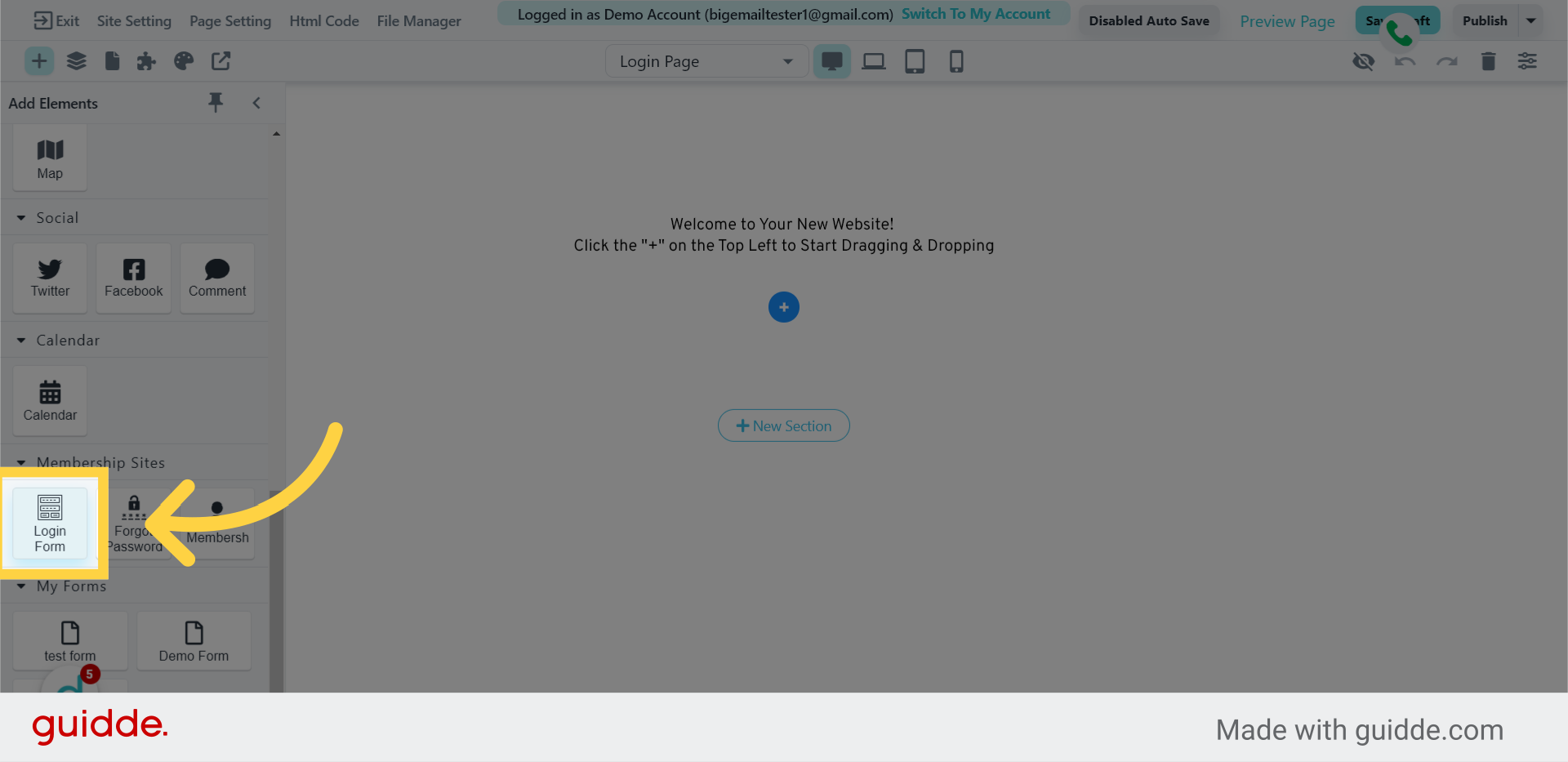 6. Drag and drop the Login Form element into your page