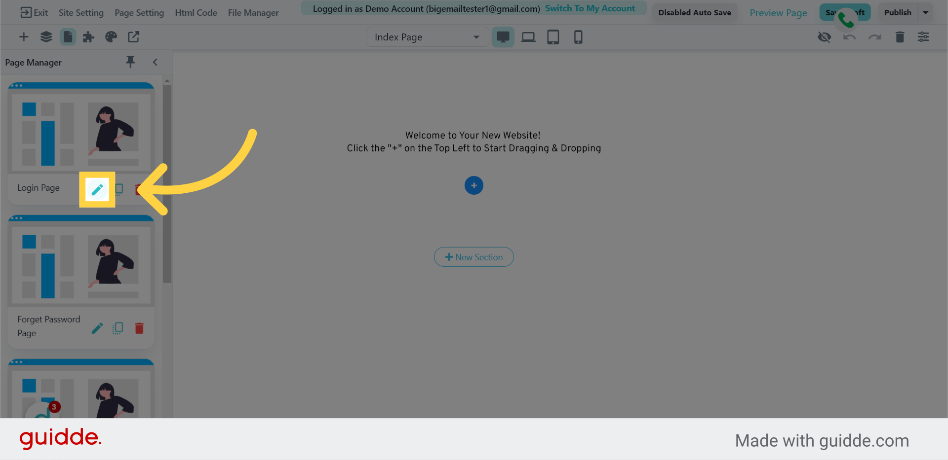 4. Click the pencil icon on the Login Page